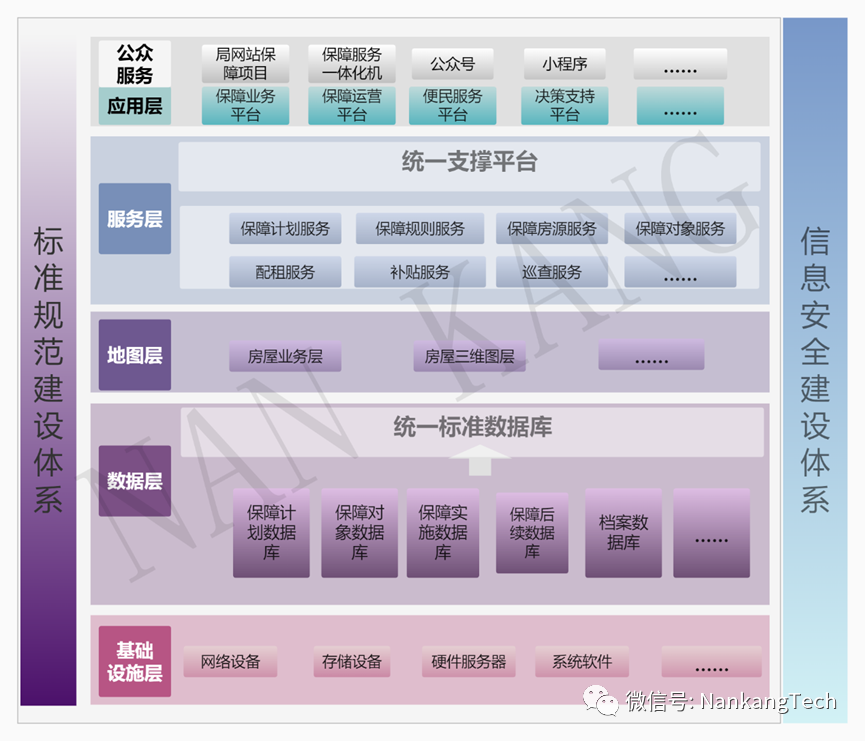 “住房保障一体化信息平台”是以网络基础设施平台、软硬件平台、相关标准和信息安全为依托,以智能化保障业务管理系统为核心,以政府信息门户网站、移动端服务为表现手段,以组织领导、政策法规和运维机制为保障的智慧管理体系。其架构图如下: 依据住房保障性相关法律、规章、制度,建立涵盖市、区(县)、街道(乡镇)、社区(村)各条住房保障条线的业务支撑平台,支持各级保障业务管理部门业务管理工作,实现市民住房保障方式全业务信息化规范管理,包括受理审核、保障实施、配后管理、档案管理、房源管理等功能。 为了协助保障房运营企业更好的完成运营管理工作,平台通过人脸识别、智能门禁、智能门锁、室内应急报警设备、智能水表等智能化设备的数据分析,结合系统化、制度化和规范化的运营管理,建立智能化运营管理平台。通过智能化运营管理平台,住房保障部门可全面了解保障房和入住对象的基本状态,保证房屋安全使用和入住对象人身安全,实现智能预警和高效处理,提升保障房运营和管理能力,解决保障房运营管理中的入住难、收费难、监管难等问题。 “住房保障一体化信息平台”中的便民服务平台是住房保障部门对外宣传住房保障政策和信息的主窗口。其主要功能首先是成为宣传住房保障的法规、政策和办事指南的主要渠道。其次是为保障对象提供便利的保障业务申请入口和办理方式。便民服务平台由住房保障部门网站PC端、移动端、一体机和办事窗口组成,“四位一体”为市民申请保障住房提供便利。 住房保障权属 “一张图”是在二三维底图基础上,通过空间信息技术展示住房保障专题图层,结合房屋基础楼盘表和房屋空间地理信息,以图为基础,辅助保障房屋数据,实现住房保障业务从申请、审批、分配、处理到监督等一系列全生命周期的可视化管理。 住房保障权属 “一张图”提供丰富的信息展示形式,包括趋势图、对比图、比例图等图形分析,结合保障房各项分析指标,包括保障对象统计分析、租赁补贴统计分析、廉租房配租分析、公租房配租分析、经适房配购分析、经适房共有产权分析、购房补贴分析、公租房房源分析、经适房房源分析等,动态、实时、直观地展示分析结果,为领导决策提供支撑。 “住房保障一体化信息平台”不断完善了保障型住房服务管理,进一步提升了数字化办公水平。通过加强数据信息的实时共享和使用,该平台实现了房源的维修、巡房、退房等业务的高效办理,提升了群众幸福感。该平台确保了所有业务全程电子化办理,通过增加限时审批功能,实现了审批高效快捷,加强了数据信息成果运用研究,切实增强了人民群众满意度。 “住房保障一体化信息平台” 进一步规范、统一了住房保障工作主要流程,并提高了住房保障工作的办事效率,促进住房保障信息的公开透明。南康科技将持续优化住房保障信息化业务应用体系,助力住房保障运营管理水平和数据管理水平不断提升。 供稿部门:不动产事业部 撰稿人:张海南