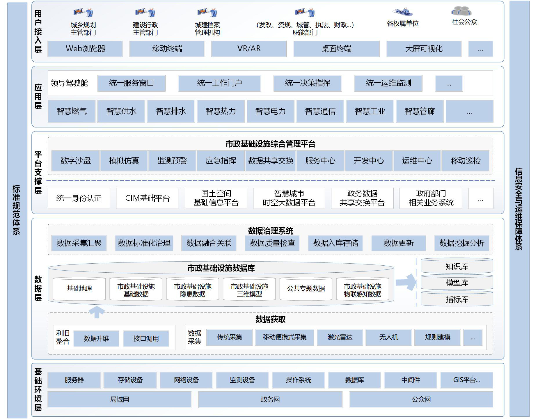 配套市政基础设施运维养护移动端应用建设,并与Web端实现互联互通,形成“实时感知、可靠传输、智能处理、精准决策”的城市市政基础设施智能化监管体系。
